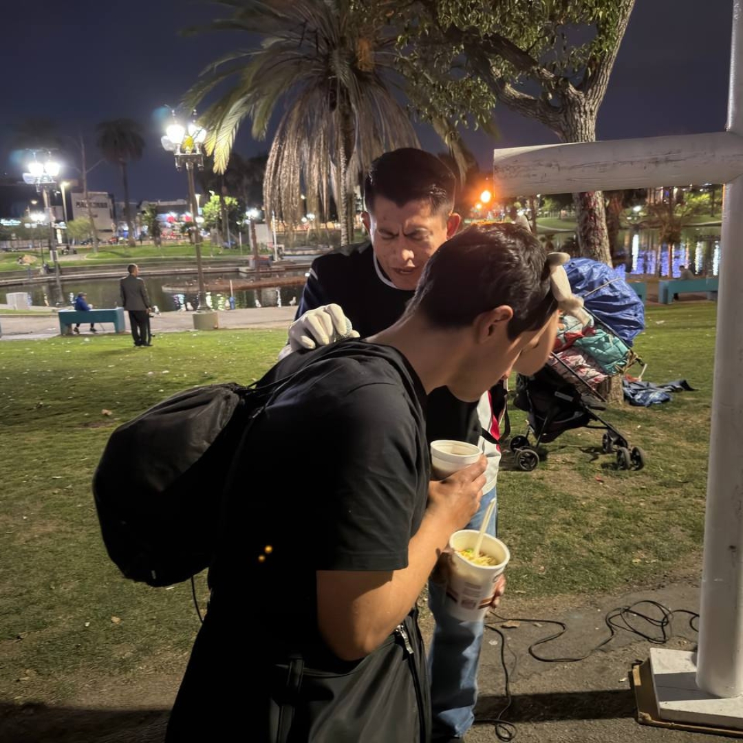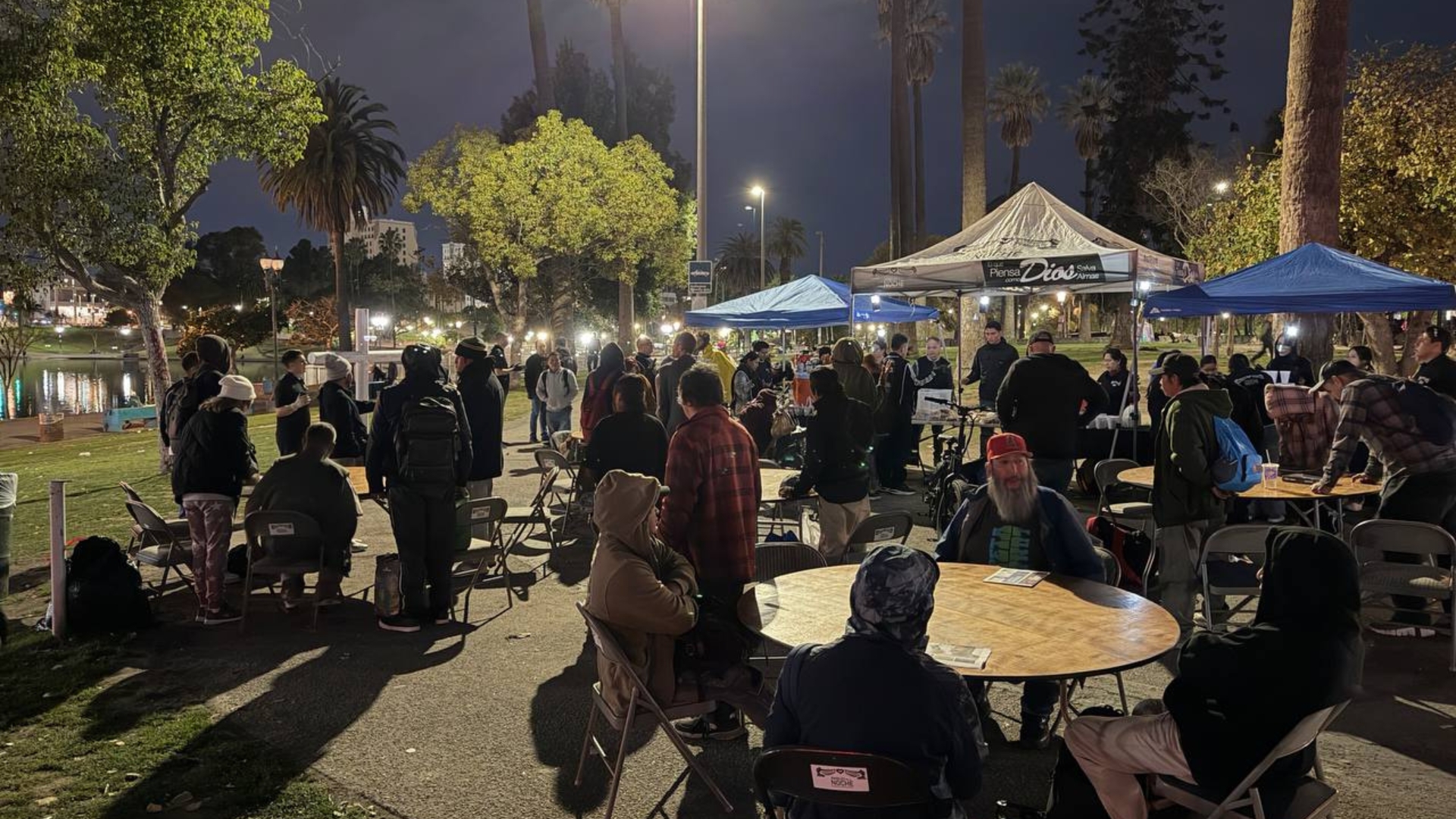 Todos nos reunimos en el Santuario de la Familia de Dios antes de salir. Los regalos y todo lo que se va a entregar se comienzan a preparar a las 6:00 p. m., y salimos aproximadamente a las 6:30 p. m. al Parque MacArthur cada martes. También salimos los domingos a la 1:00 p. m., en el mismo parque.