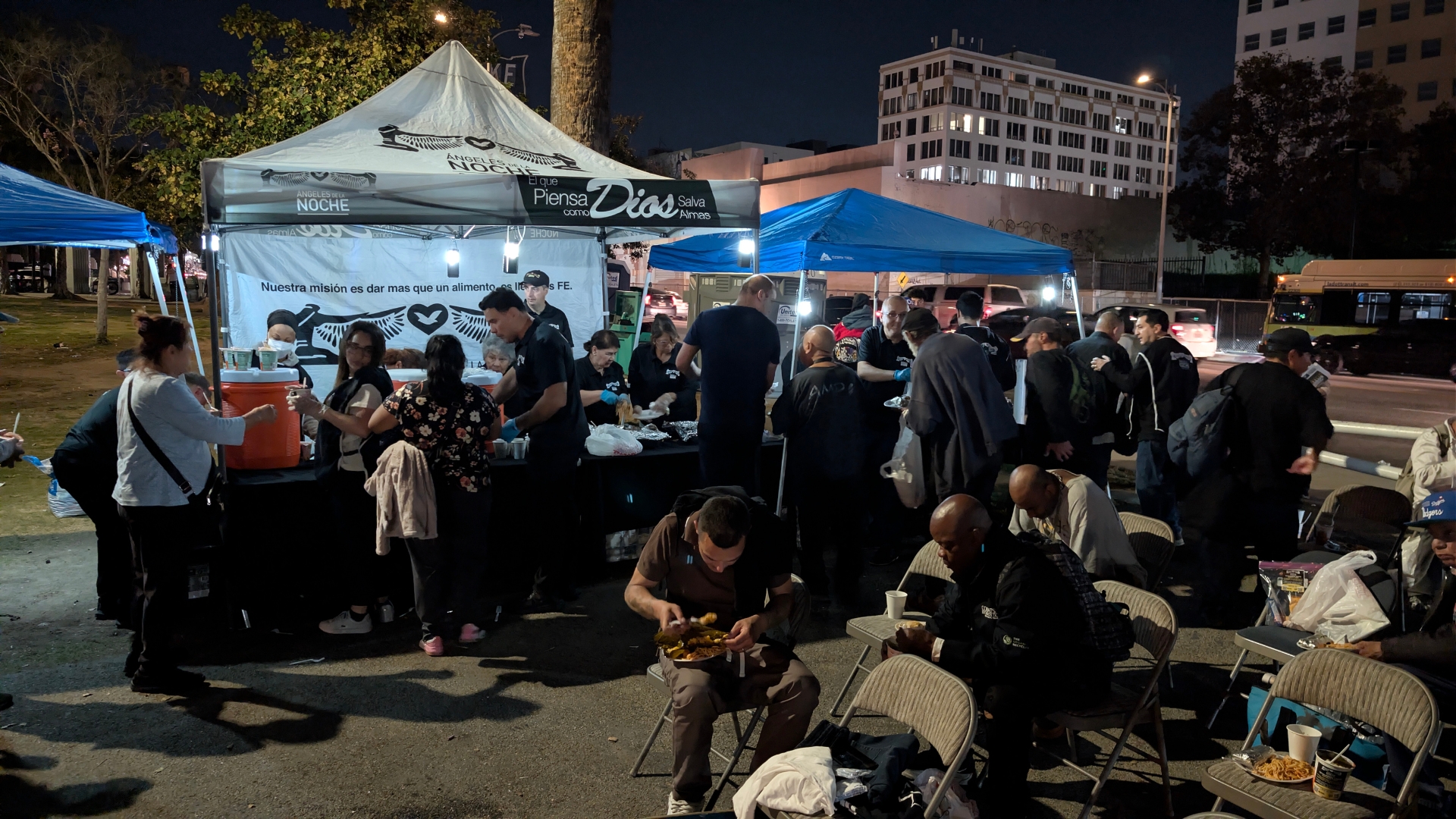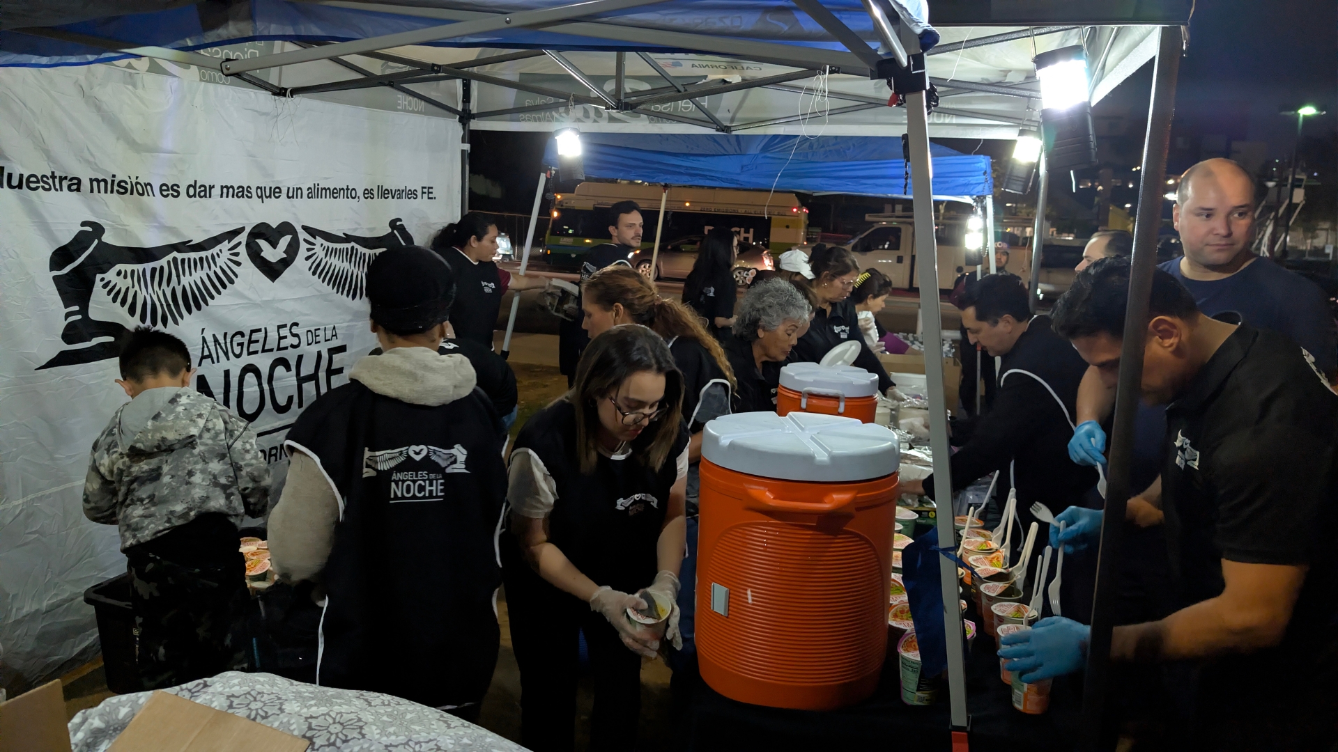 Por eso, cada semana el proyecto Ángeles de la Noche sale a alimentar a las personas con fe y esperanza que vienen de la Palabra de Dios. Durante estas conexiones se entregan comida, agua, ropa, paquetes de higiene y, sobre todo, una palabra de fe. Todos los presentes reciben una gran bendición.